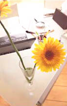 Decorate your office with cut flowers by simply filling a coffee mug with a few stems and using them as a paperweight or place several blossoms in matching vases for use as book ends.