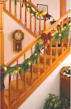 Adorn a banister with an intertwined garland of aromatic Douglas Fir, Wester Red Cedar or Noble fir. Miniature white lights and velvet bows enhance the festive look.