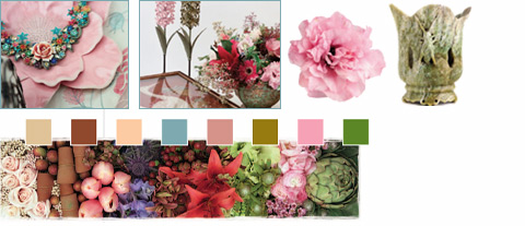 A midrange medley of earth colors with a vintage feel are layered to create this look. Find archival patterns juxtaposed with Asian motifs and flea-market finds. Embroidery, chiffon and filigree are at home here. Souvenirs of travel as well as favorite and sacred items are unabashedly collected side by side, exposing the layers of life's experience.