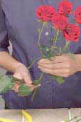 Fill a clean vase with fresh, cool water. Add flower food according to packet directions. Flower food supplies nutrients and chemicals that extend life and kill bacteria. Remove leaves from the bottom of stems so none are underwater. Leaves in water deteriorate causing clogged flower stems.